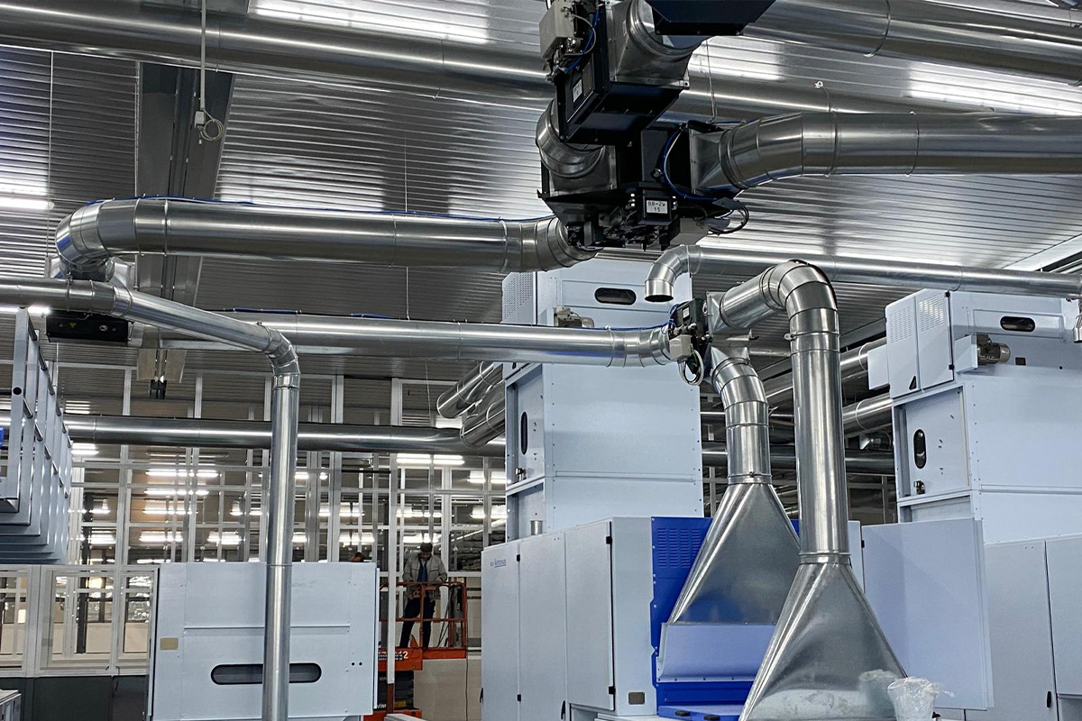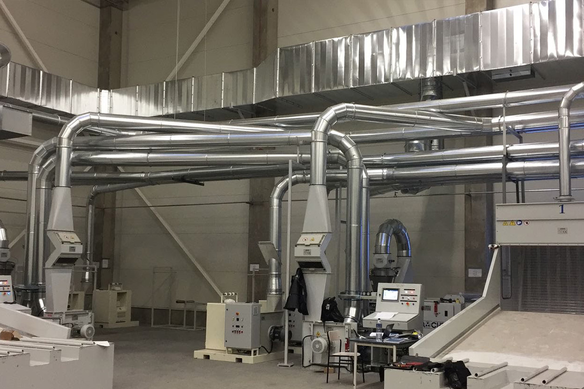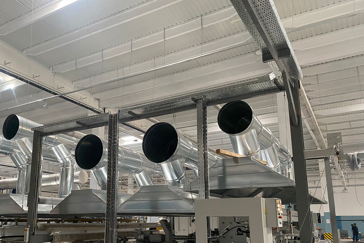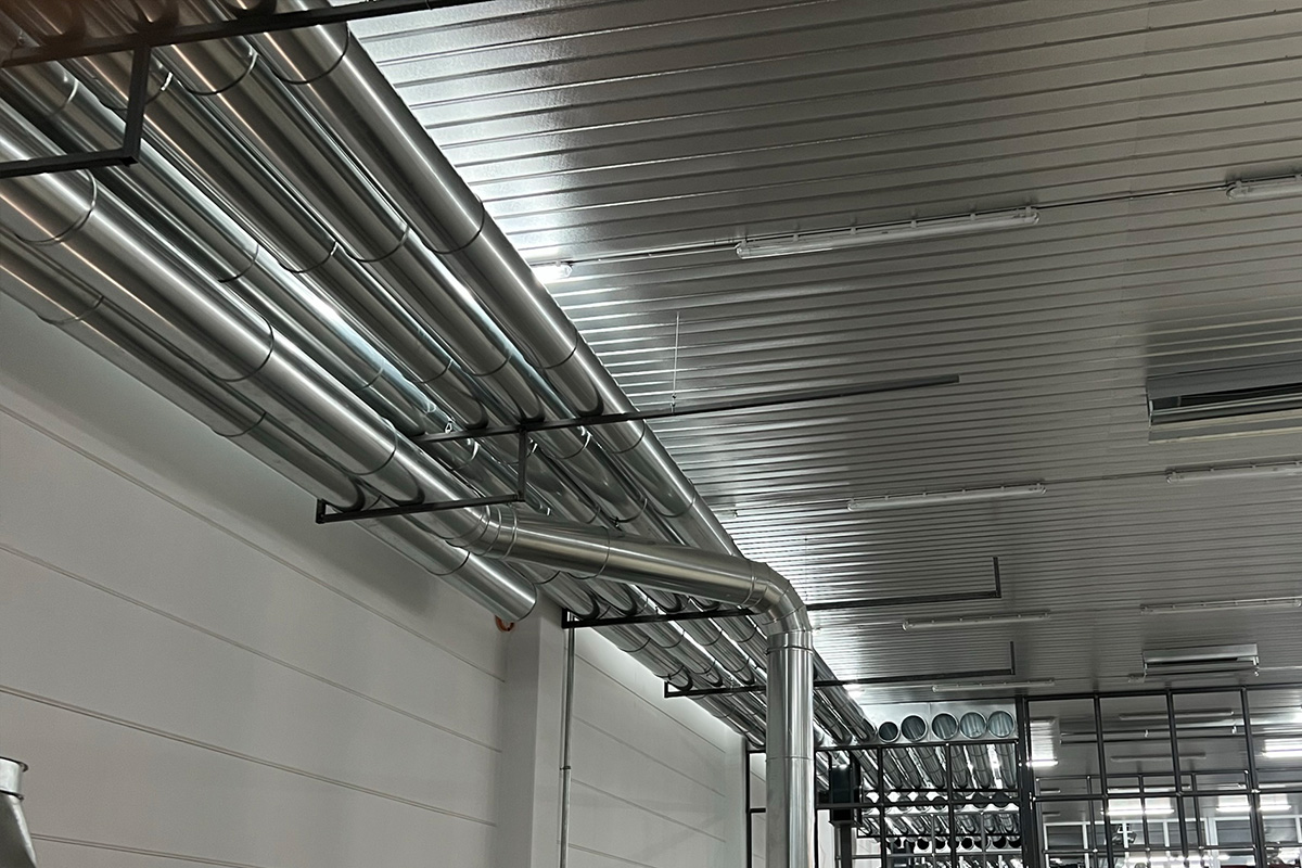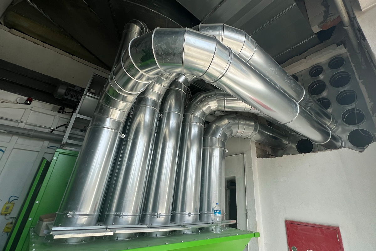 Pnömatik transport hava kanalları, pamuk işleme tesislerinde Trützschler, Rieter ve benzeri makine hatlarında kullanılan borulama sistemlerinin güvenli ve verimli bir şekilde çalışmasını sağlamak amacıyla özel olarak üretilmektedir. Bu sistemlerde kullanılan silindirik kanal kelepçeleri ve jontalı kelepçeler, TSE standartlarına uygun galvaniz sacdan imal edilmekte olup yüksek dayanım, kolay montaj ve tam sızdırmazlık sunacak şekilde tasarlanmıştır. Kelepçelerin sac kanal yerleşim derzleri özel macun uygulamasıyla güçlendirilir ve böylece hava kaçakları engellenir.